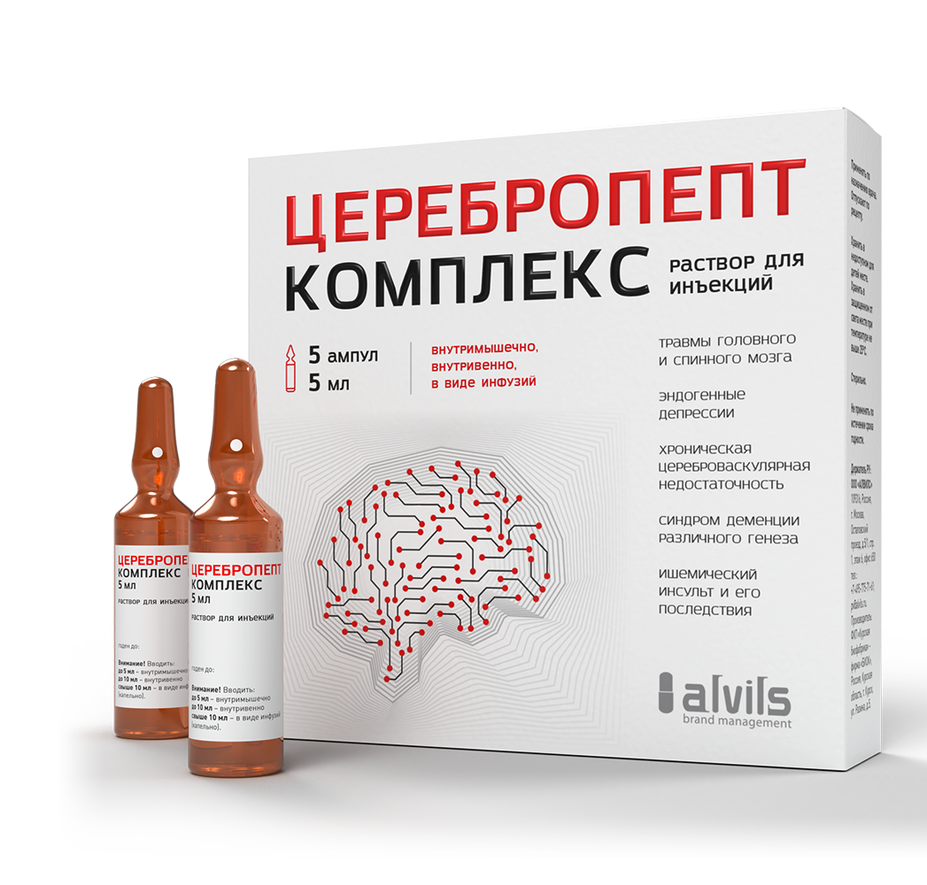 Компания Alvils занимается полным управлением медицинскими брендами, от разработки бизнес-идеи до контроля дистрибуции продукта по всей стране. В этот раз нам была поставлена задача по разработке упаковки для ноотропного препарата Церебропепт Комплекс. И хотя этот препарат стационарный, Алвилс трепетно относится к внешнему виду своих брендов и рассматривает упаковку в таком же ключе конкуренции, как и с обычными аптечными препаратами.