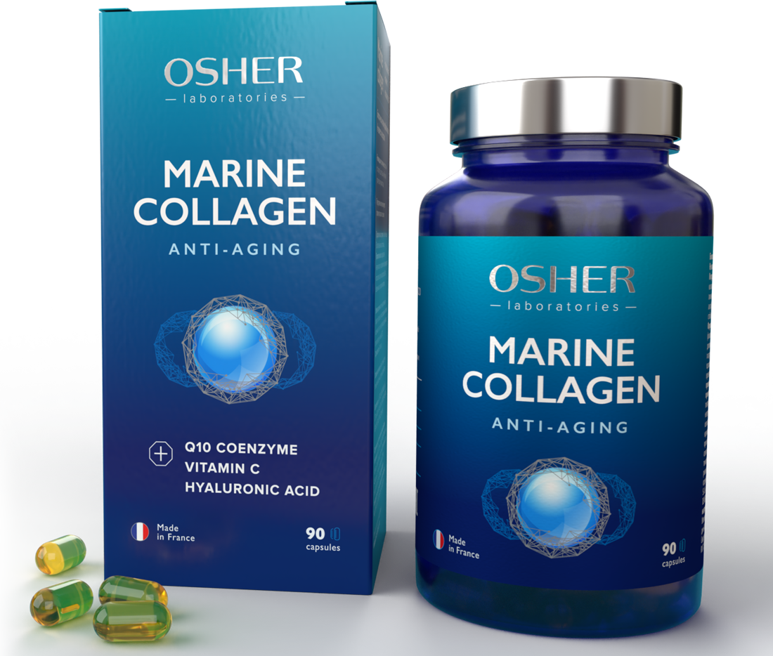 Морской коллаген увлажняет кожу, уменьшает морщины, всячески способствуя поддержанию женской красоты. Входящий в состав коэнзим q10, витамин С и гиалуроновая кислота помогают замедлить старение клеток и обладают другими омолаживающими эффектами. Все это вместе дает основную и дополнительные защиты клетки, что мы отразили в иллюстрации.